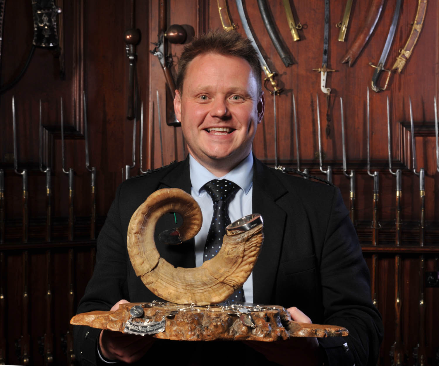 Pictured: Sandy Cameron receiving the Silver Chanter in Skye