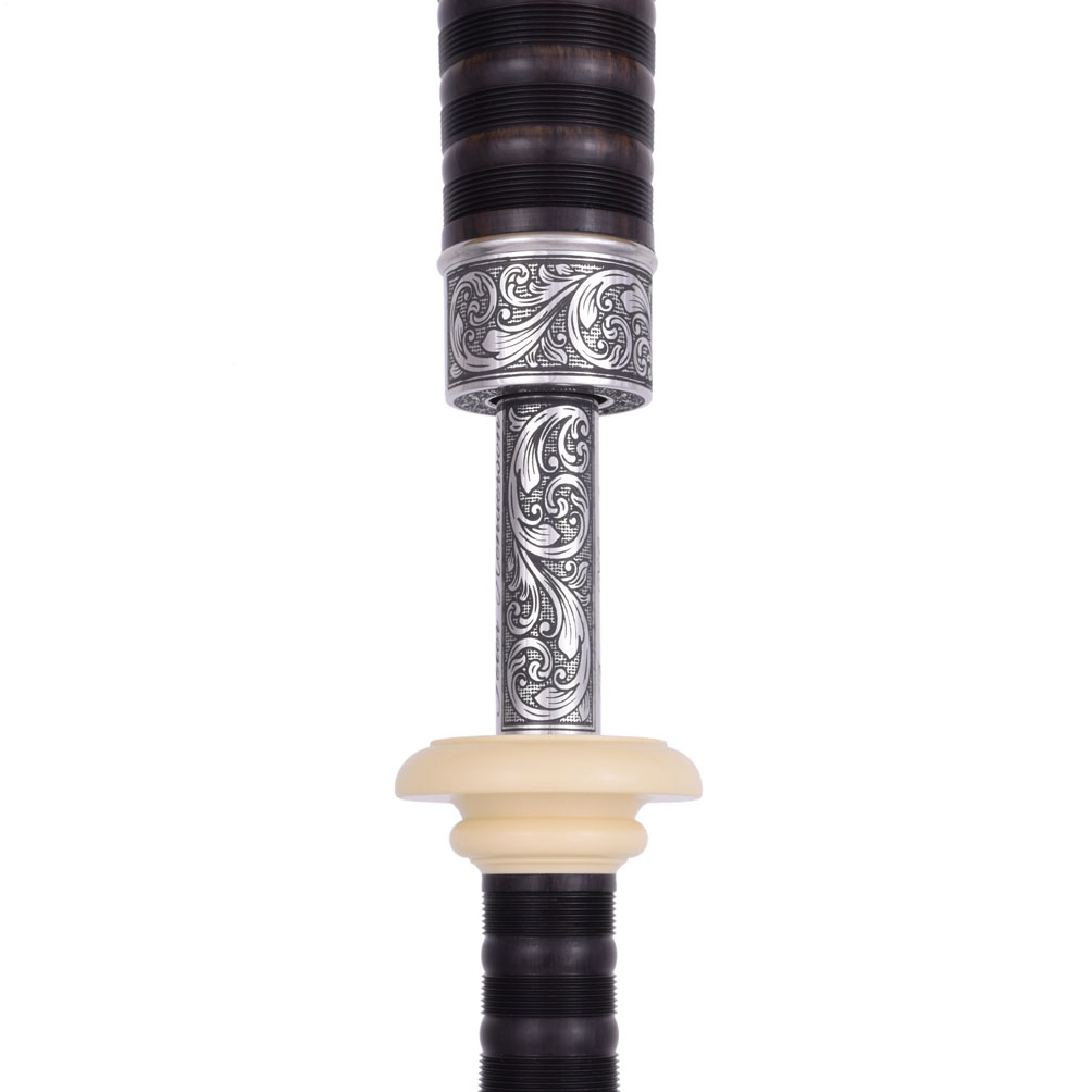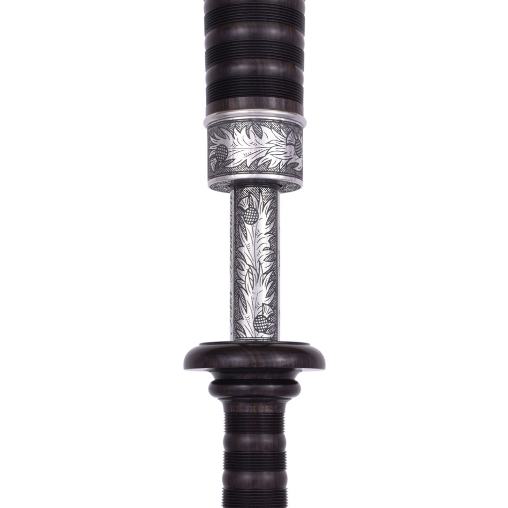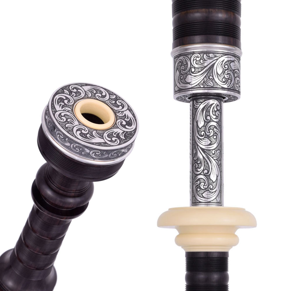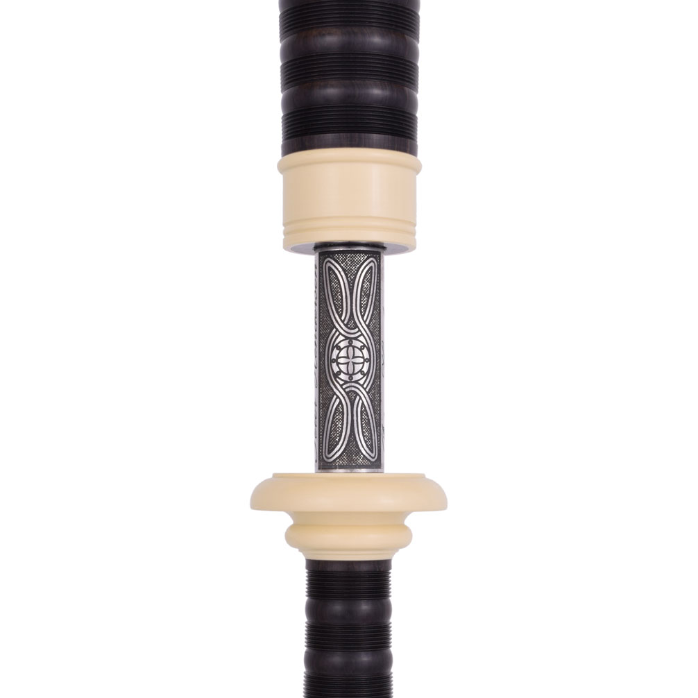 Crafted with exceptional attention to detail, this distinctive set of Heritage Bagpipes features laser-engraved Viking nickel and finely detailed woodwork inspired by Viking artistry.